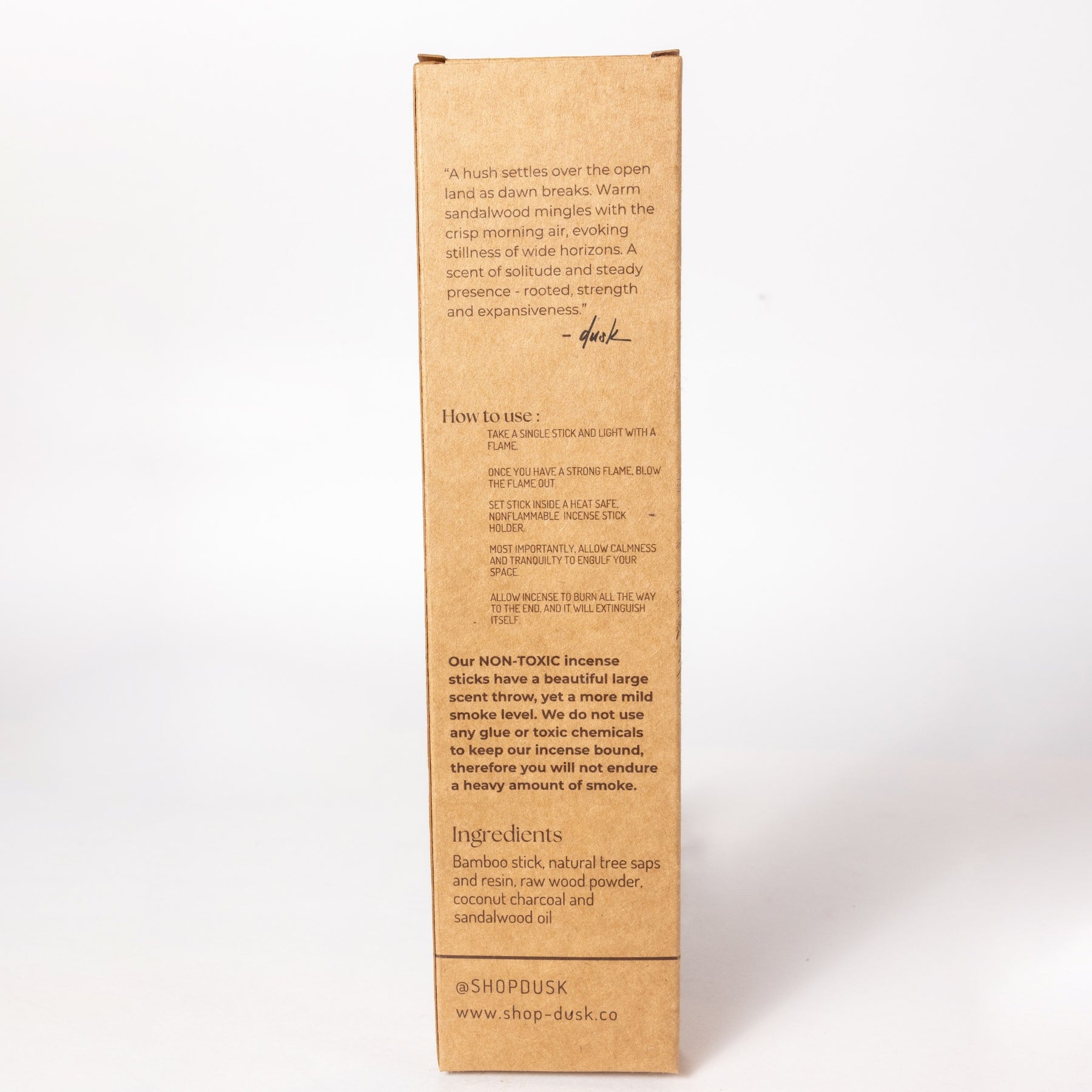 "A hush settles over the open land as dawn breaks. Warm sandalwood mingles with the crisp morning air, evoking stillness of wide horizons. A scent of solitude and steady presence - rooted, strength and expansiveness."